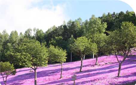 滝上町の魅力を語る上で外せないのは5月上旬から5月下旬にかけて「芝ざくら滝上公園」に咲き誇る芝ざくら。ミカン箱ひとつ分の苗からスタートした芝ざくらは、60年以上かけて日本最大級の10万平方メートルの大群落になりました。斜面一面に広がる芝ざくらはまさに圧巻の一言。ぜひ一度は見ていただきたい滝上町を象徴する景色です。