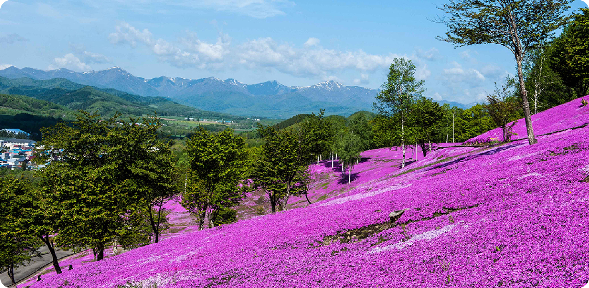 From early May to early June, the whole park is covered with a bright pink carpet of moss phlox flowers. The park began in 1956 with a “mandarin orange box full” of moss phlox seeds. More and more flowers were planted each year until they filled a 100,000m2 area. The beautiful carpet of flowers covers the hillsides for around a month. As well as being a beautiful bright pink, they fill the park with a sweet scent, drawing you into a dreamlike world. At the height of moss phlox season, the local people hold a Moss Phlox Festival, with stalls selling snacks and souvenirs. There are also all kinds of stage events.