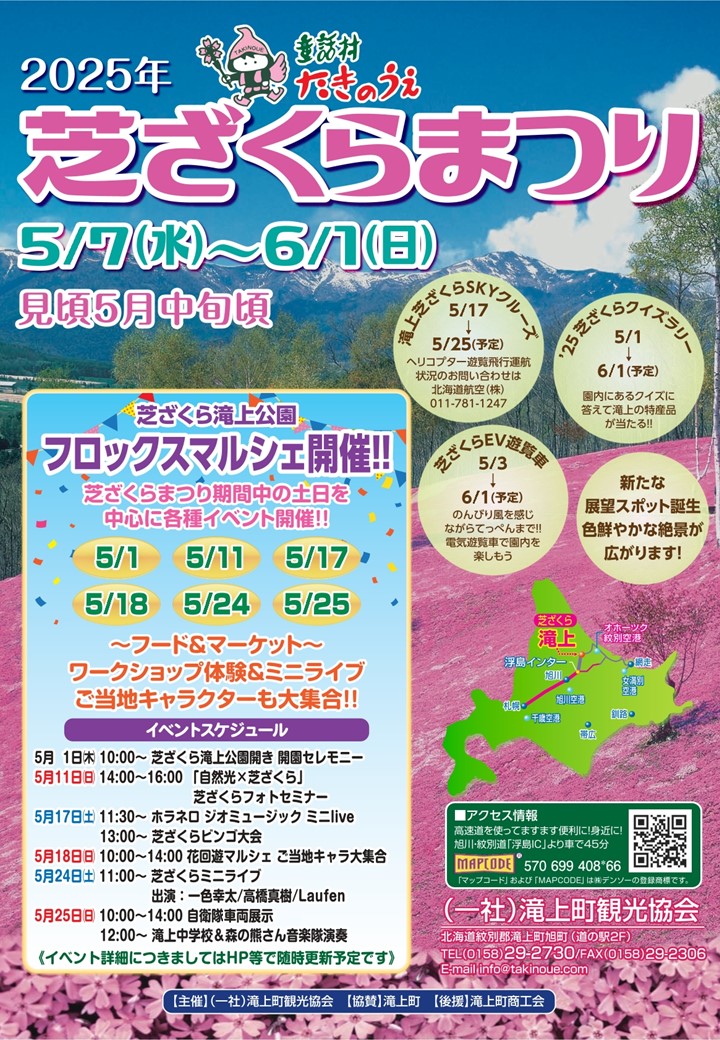 #お知らせ春の絶景を空から楽しむ特別な体験! 皆様、芝ざくら滝上公園で開催される「芝ざくらSKYクルーズ」をご存知ですか?北海道航空が運航するこの時期だけの特別な体験。山一面を染め上げる「芝ざくら」そして残雪残る雄大な「北見山地」 […]