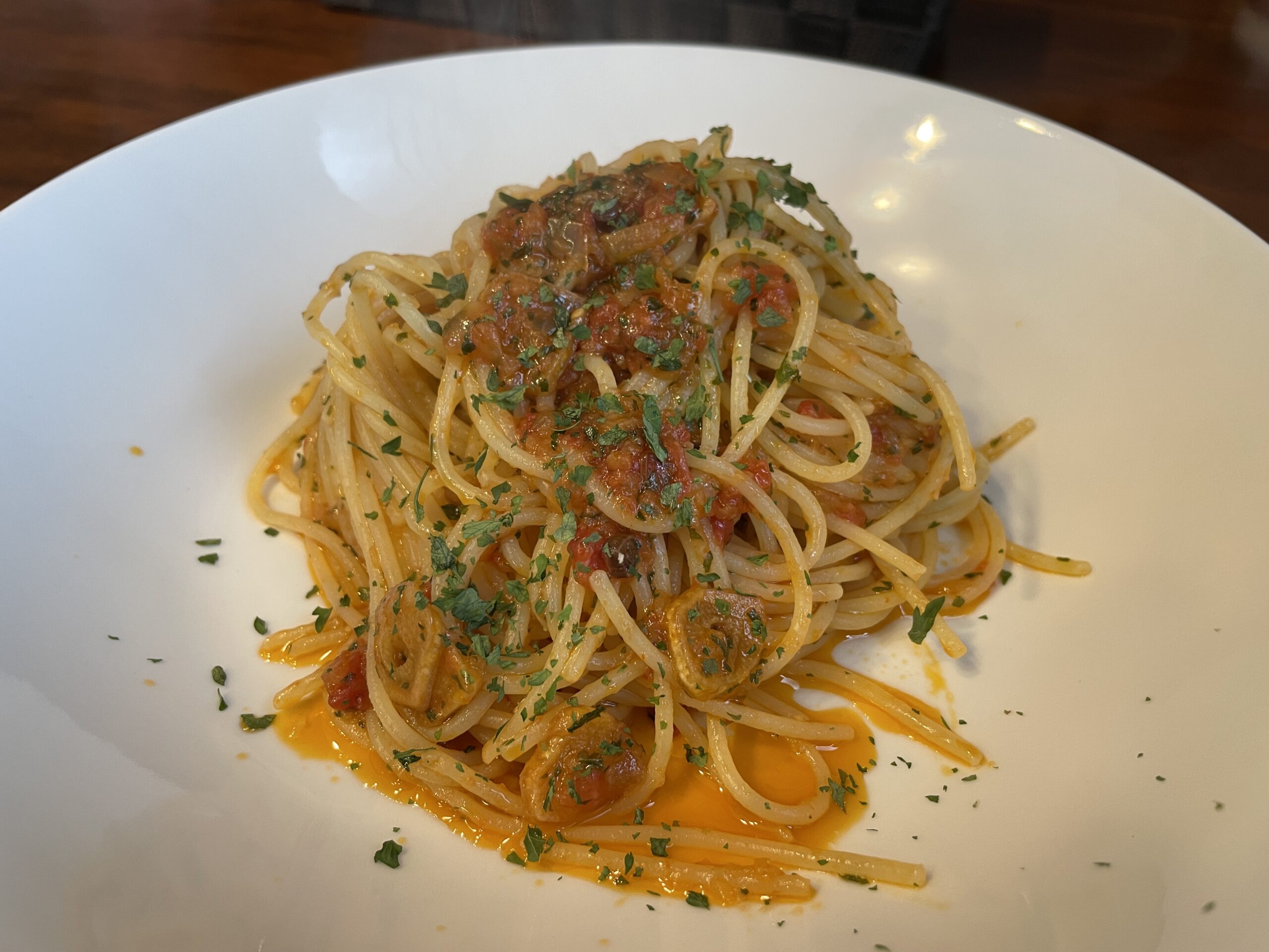町のはずれにある小さな自家焙煎コーヒー店で、パスタやお好みのコーヒーを楽しめます。